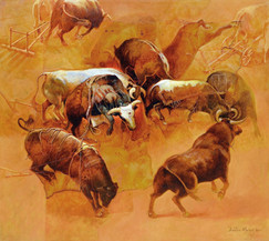 Dustin Muñoz's mastery in realism allows him to successfully express himself in surrealism, but without ever attempting harmony and balance, or causing discomfort, since he always points to our sensitivity, visual and emotional. The poetic conception of his cosmogonies, sometimes unidentifiable, distributes and assembles them thanks to a fantasy controlled by impeccable workmanship. Neither, nobody like him has known how to penetrate the aesthetics of ugliness, and we do not forget that the subject of his doctoral thesis in Spain analyzed "The aesthetics of the ugly in Goya's black paintings".