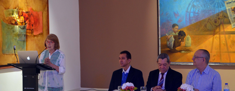 Within the framework of the pictorial exhibition, the conversation "Convergence between philosophy and art in the Terra lux exhibition" was held, guided by the renowned experts Marianne de Tolentino, art critic and responsible for the assessment of the artistic part; and Dr. Alejandro Arvelo, academic and philosopher, knowledgeable about the intellectual trajectory of the artist Dustin Muñoz, the latter being the one who moderated the activity.