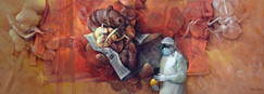 The great recent work of his, at the same time special, look and admired, happily received a Prize at the last Biennial, Not giving it to him would have generated a massive protest... since, in this category, no equivalent work was presented, for the concept and the message, the quality of the painting and the drawing underlying, also the subtlety of the light and the smoothness of the oil.